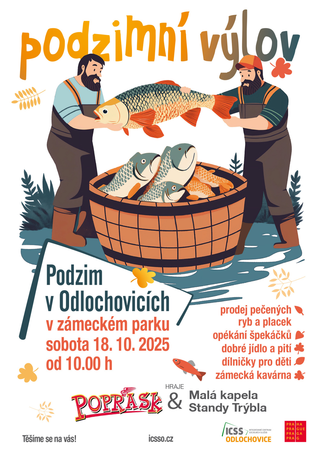 Přijďte si užít tradiční podzimní výlov do zámeckého parku v Odlochovicích. Těšit se můžete na prodej pečených ryb a placek, opékání špekáčků, dobré jídlo a pití i dílničky pro děti. O příjemnou atmosféru se postará kapela Poprask a Malá kapela Standy Trýbla. Chybět nebude ani zámecká kavárna.