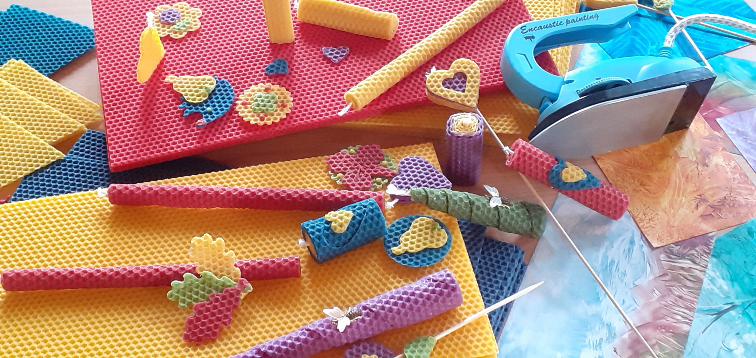 Malování horkým voskem – enkaustika: kouzelná výtvarná technika, při které se barevný vosk nanáší speciální žehličkou na papír. Vznikají nádherné originální obrazy plné barev a fantazie – obrázky, pohlednice i přáníčka.